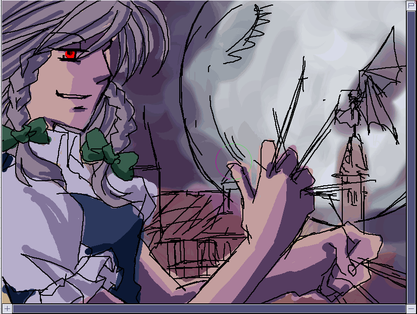 凶悪顔の咲夜さんが書きたかった。戦っている人はかっこよくかきたくなるものです。あれ、これ、瀟洒なメイドさんだったはずだよね、ねえ(あーあ)